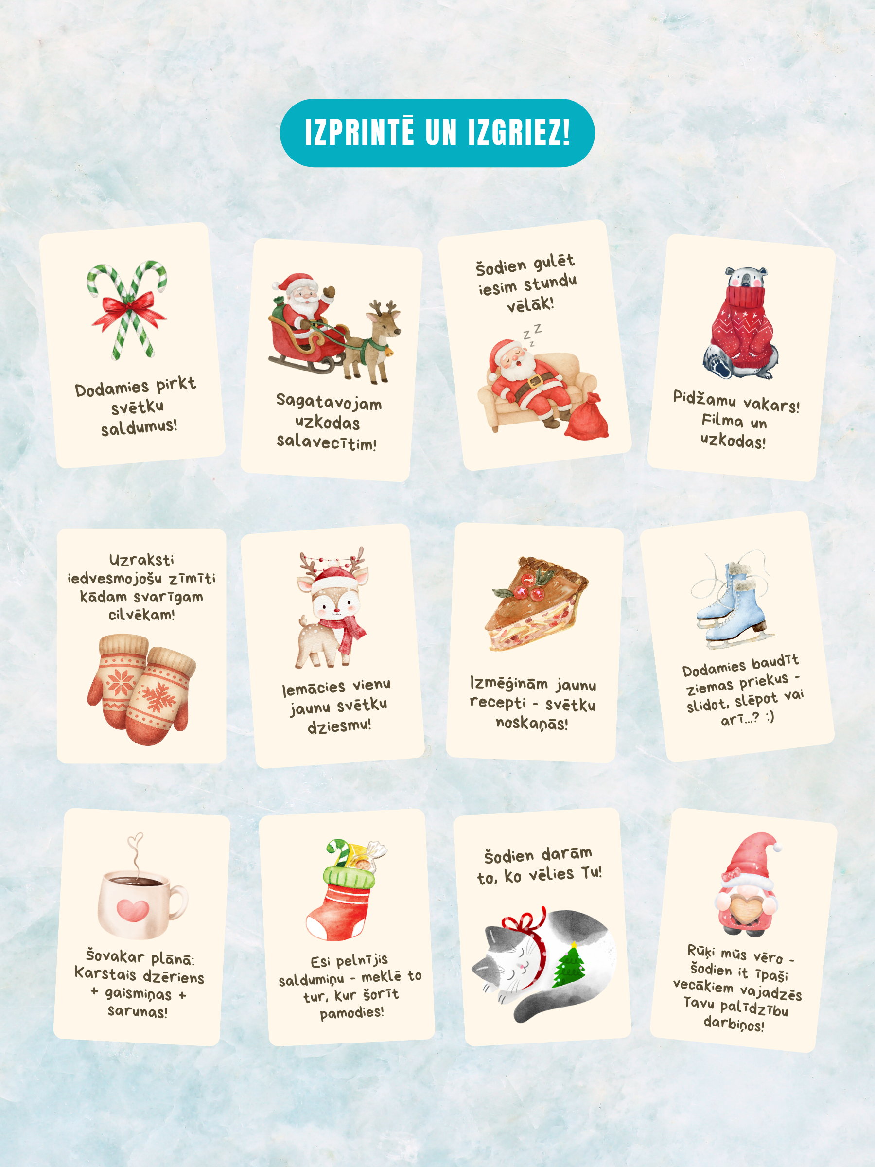 Izvēlies 24 kartītes - pa vienai katrai dienai līdz Ziemassvētkiem.