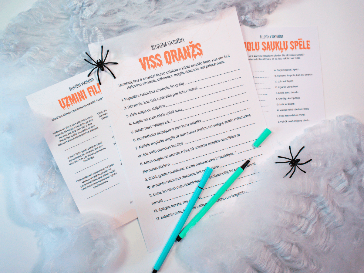 Uzdevumi: Viss oranžs, Vārdu juceklis, Helovīna alfabēts, Uzraksti trīs – Domā ātri!, Vai Tu zini? (1), Vai Tu zini? (2), Patiesība vai meli, Kas tā par fobiju?, Uzmini filmu!, Zīmolu saukļu spēle, Izlasi un aizpildi!, Vārdu meklēšana, Krustvārdu mīkla