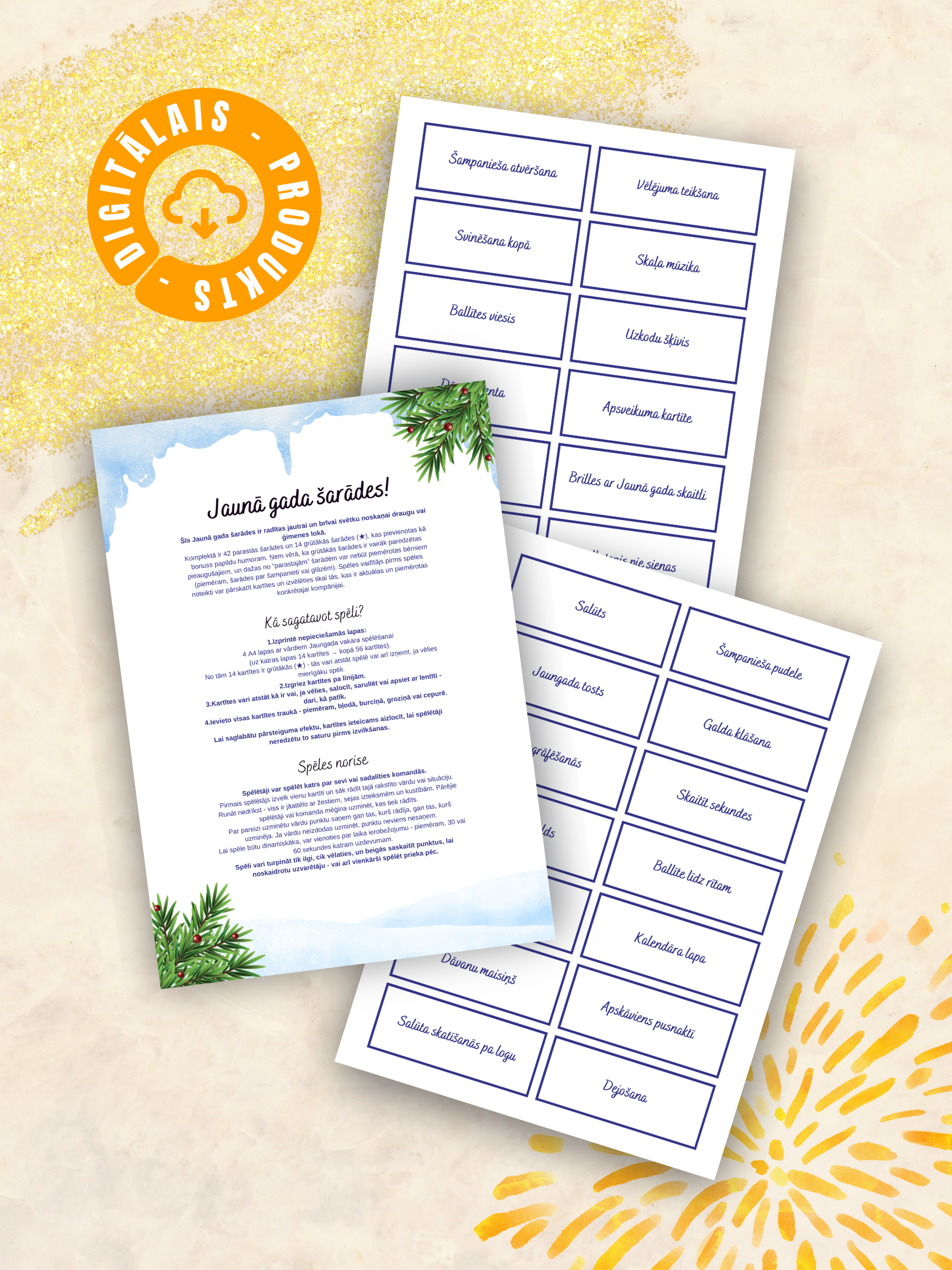 Padari Jaungada svinības vēl jautrākas ar spēli “Jaunā gada šarādes” - lieliska izklaide draugiem, ģimenei un kolēģiem. Spēle piemērota gan mierīgai iesildīšanai, gan aktīvākai ballītei, kur netrūkst smieklu un kustības.