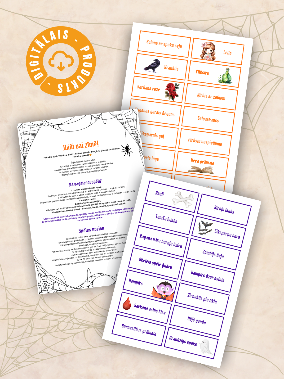 Spēle Helovīna vakaram - padari Helovīna ballīti jautru un neaizmirstamu ar spēli “Rādi vai zīmē!” - lieliska izklaide draugiem, ģimenei un bērniem.